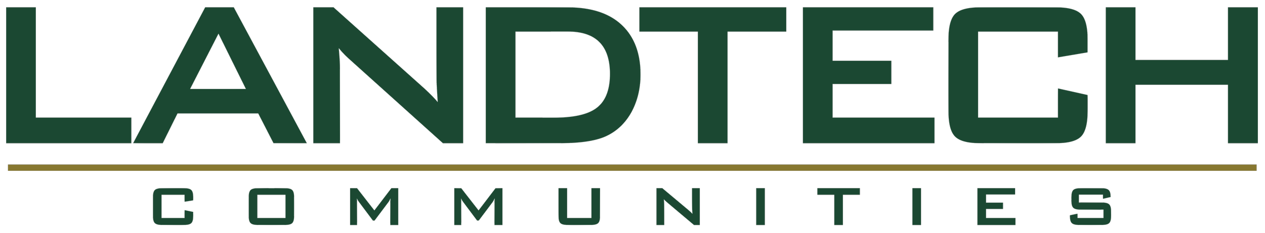The logo of Landtech Communities featuring the company's name in bold white letters on a black background, with ' LANDTECH' on top and a horizontal line beneath, followed by the word 'COMMUNITIES' in smaller white letters.